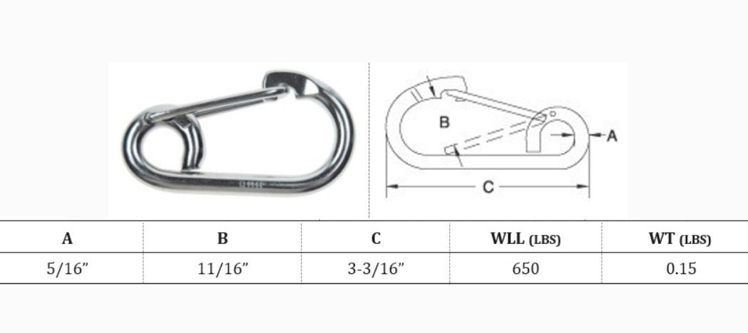 5 PC 5/16" Gate Spring Snap Hook Lobster Claw Carabiner Stainless Steel Marine Clip Boat 650 LBS Cap