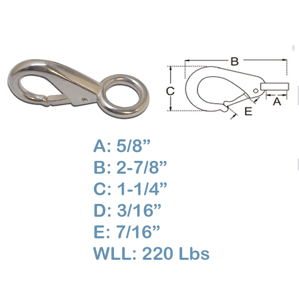 - 5 PC 5/8" Size Grade 316 Stainless Steel Fixed Eye Boat Snap Hook 2.8" Lenght