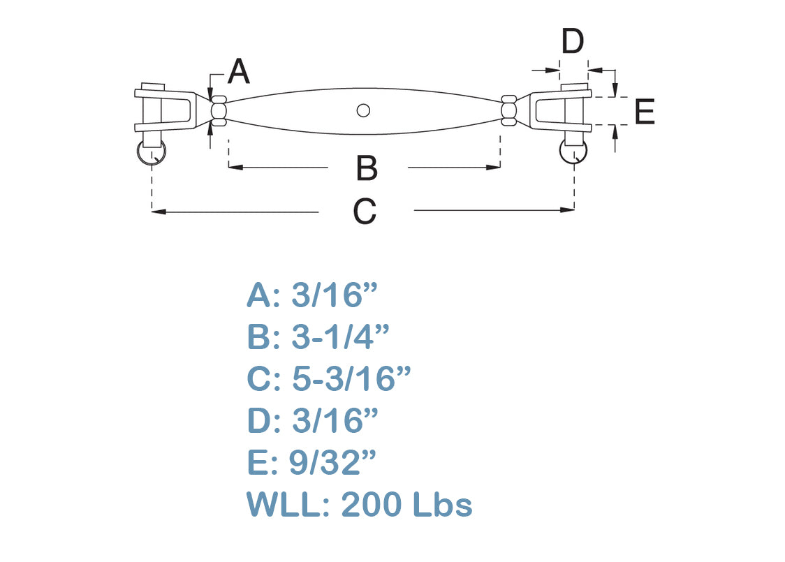 - 5 PC Stainless Steel Closed Body Turnbuckle Jaw Jaw 3-1/6'' WLL 200 Lbs