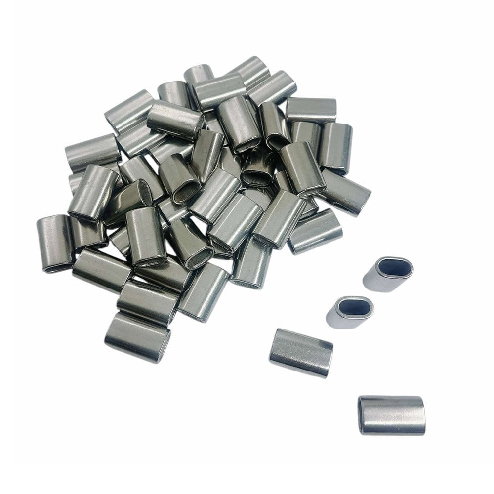 - 50 Pcs Stainless Steel Wire Rope Clip 1/4" Oval Crimping Sleeve Tube Connector
