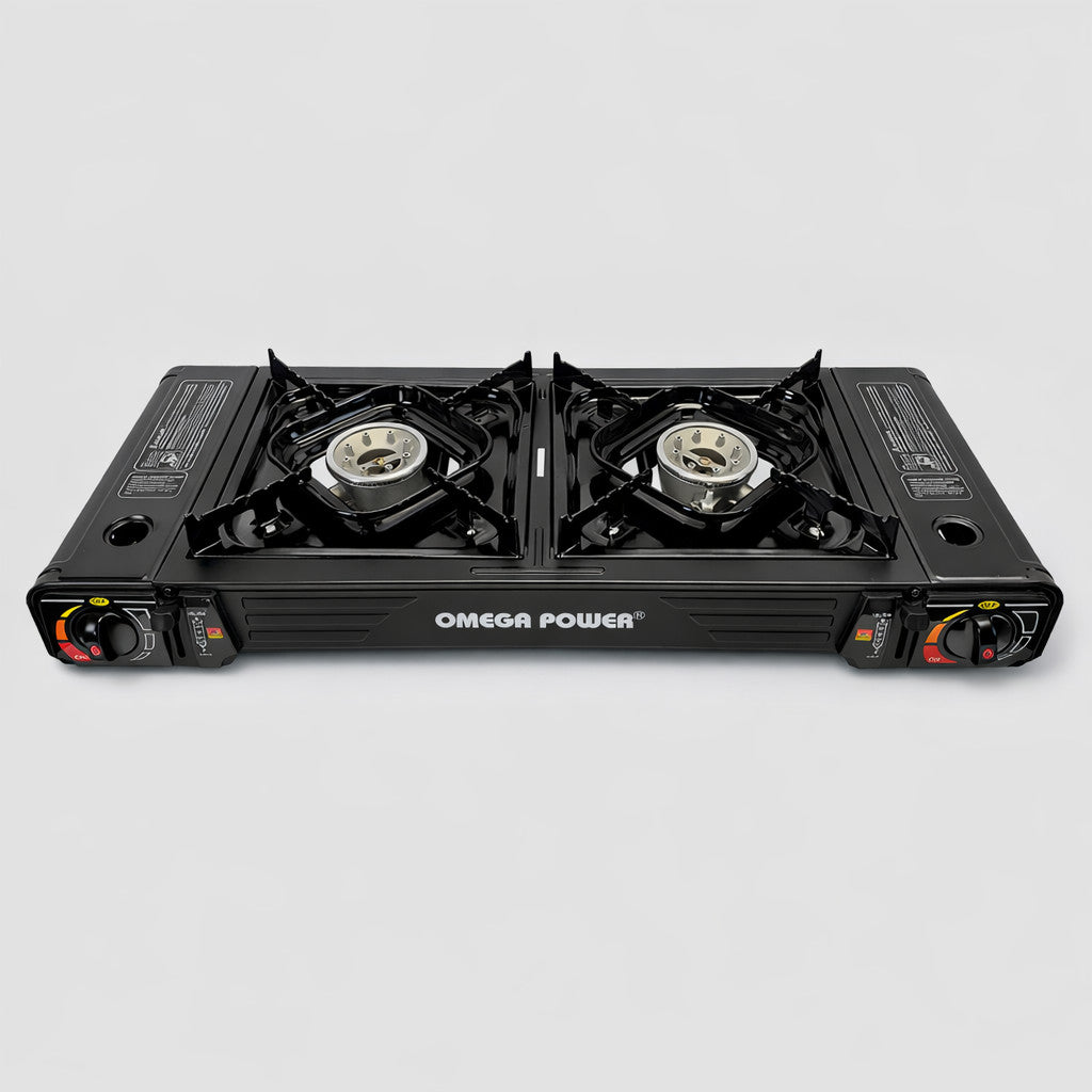 Portable Double Burner Butane Gas Stove – 10,000 BTU Auto Electric Ignition Cooker for Camping, Outdoor Cooking & Tabletop Use