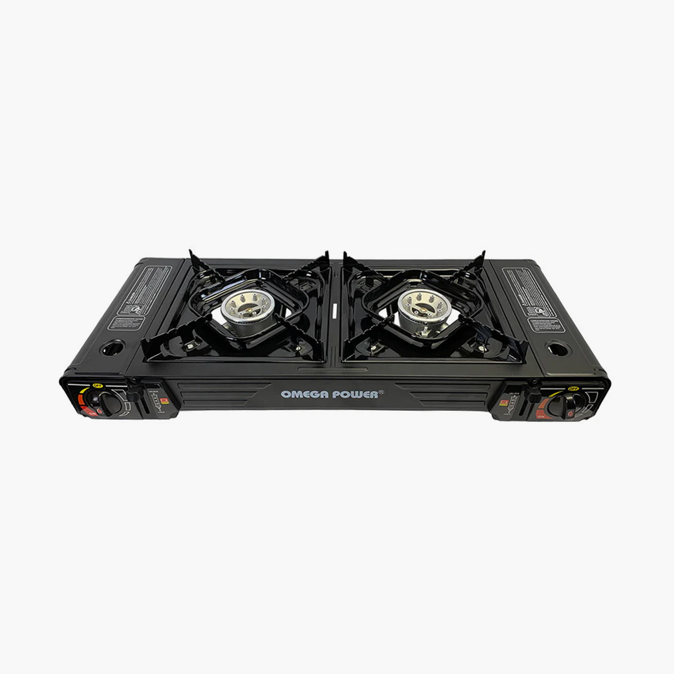 - Auto Electric Lighter Ignition Butane 10,000 BTU Portable Double Burner Cooker Stove