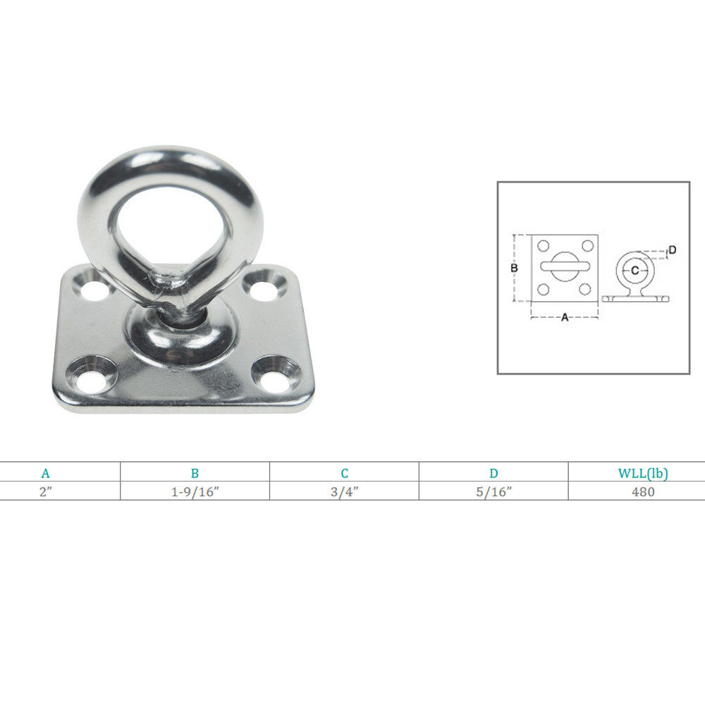 - Boat Deck Stainless Steel 5/16" Square Pad Swivel Eye Rigging Lift Marine Grade
