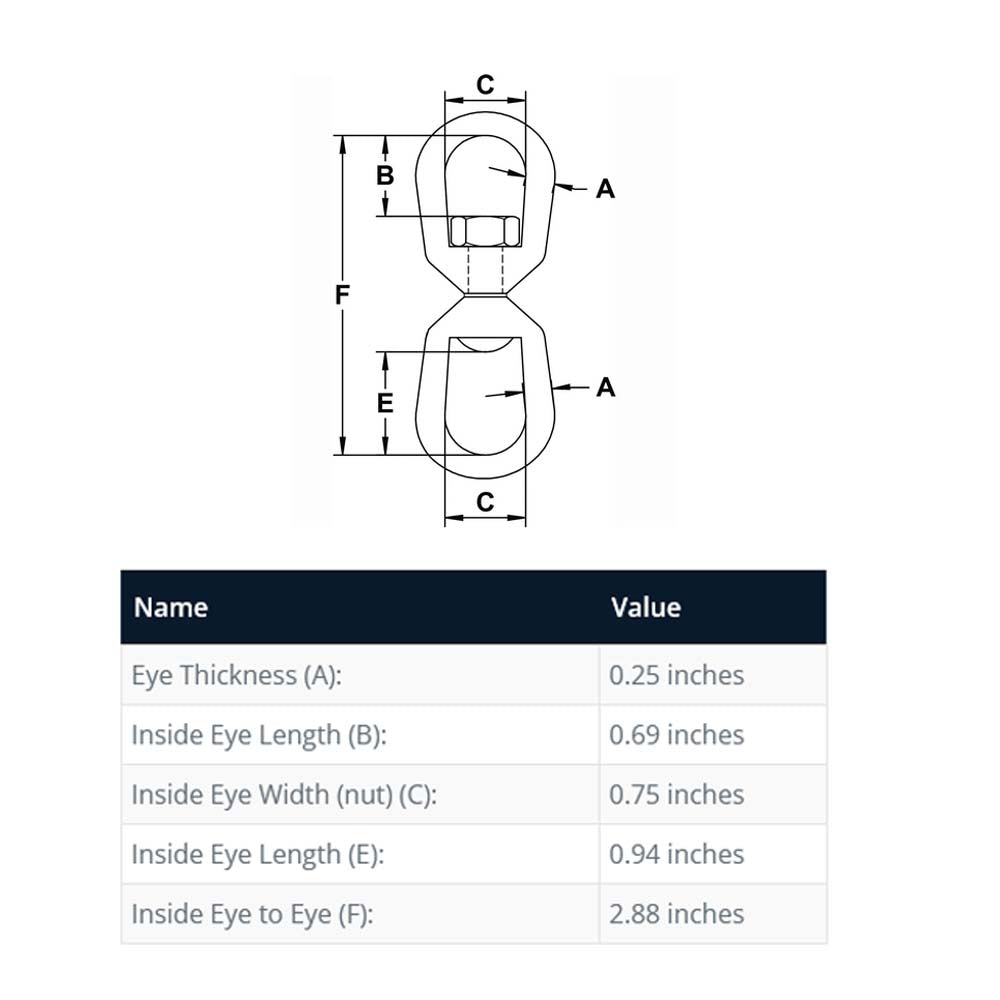 Hot Dipped Galvanized 1/4" Eye Eye Swivel Marine Mooring 850 Lbs WLL
