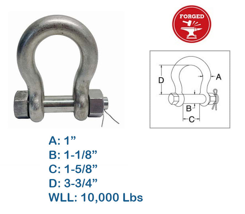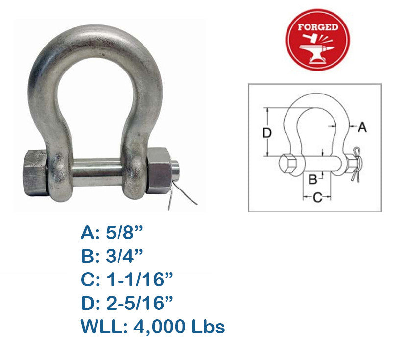 - Bolt Pin Anchor Shackle, T316 Stainless Steel, Drop Forged