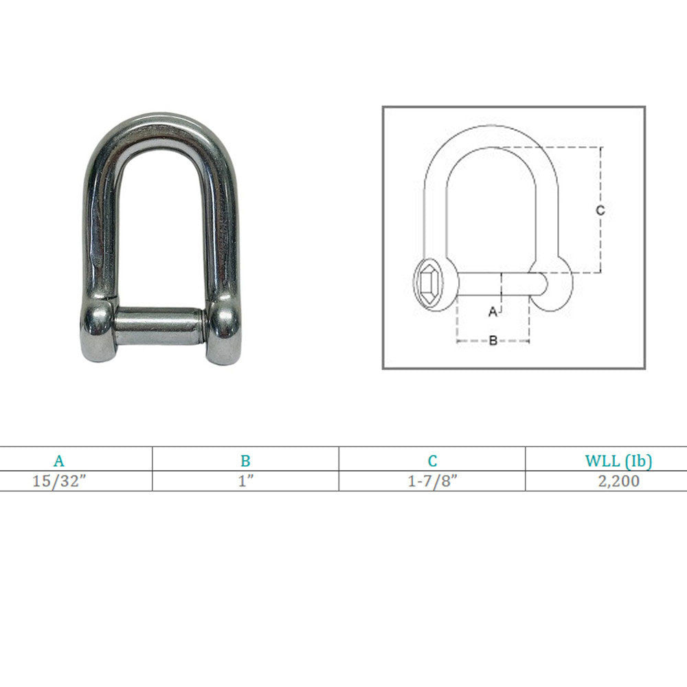- D Shackle Hex Sink Marine Grade Screw Pin Stainless Steel T316
