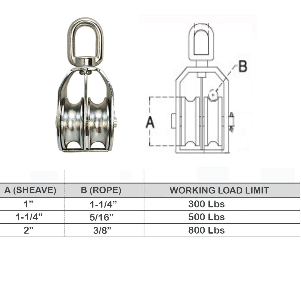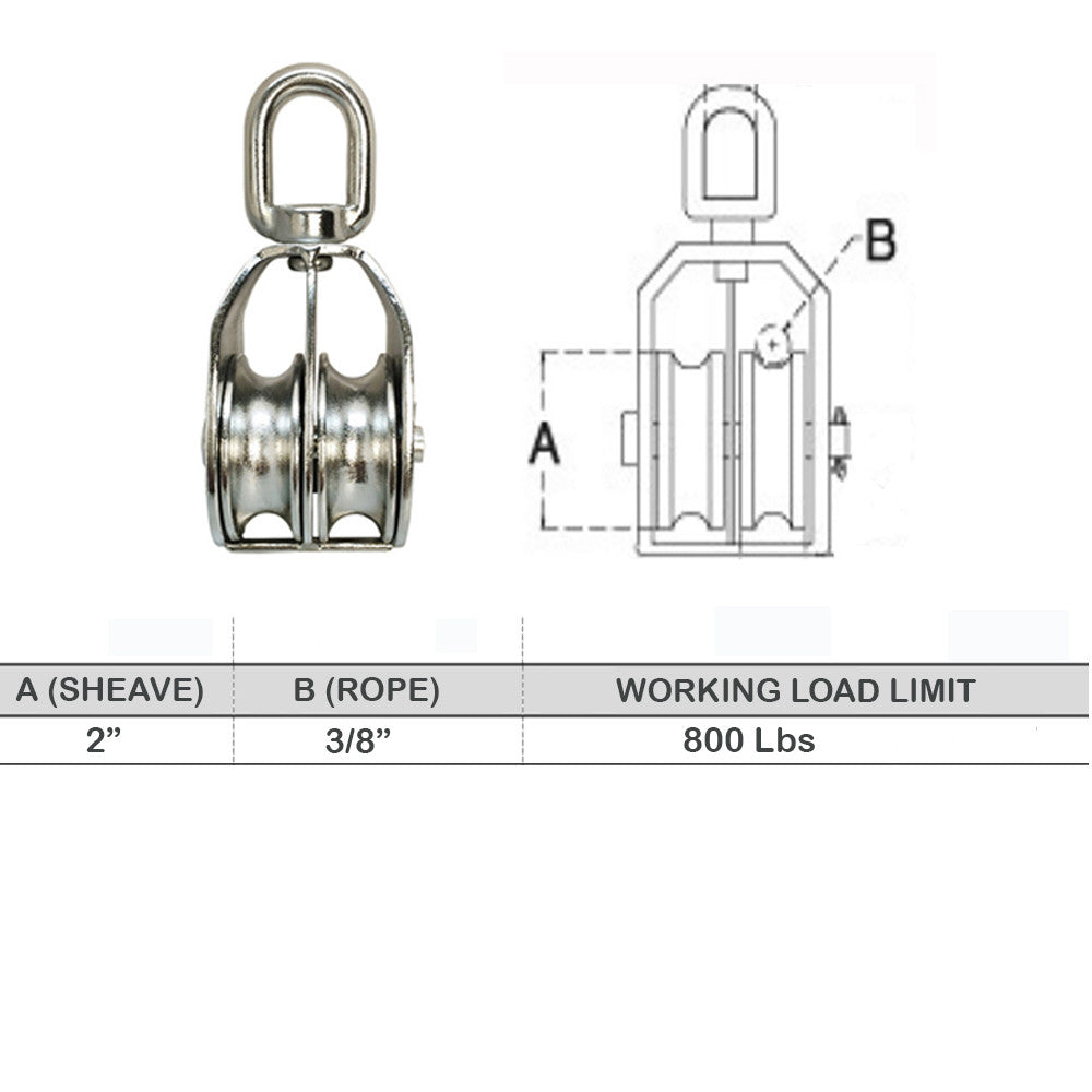 - Double Pulley with Swivel Eye Hoist Lifting Stainless Steel 316