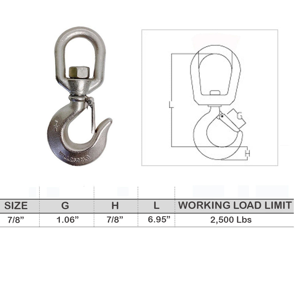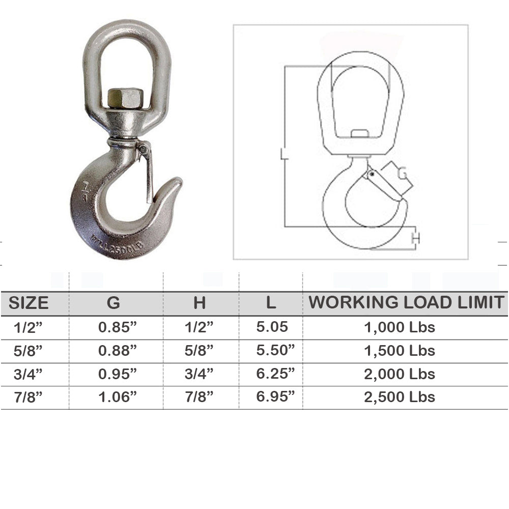- Drop Forged Swivel Hook Lifting Hook Swivel Eye Hook WLL Stainless Steel T316