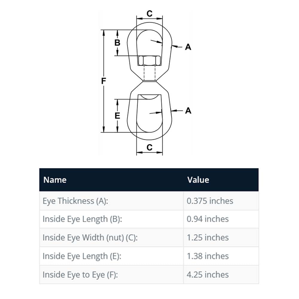 4 Pcs Hot Dipped Galvanized 3/8" Eye Eye Swivel Marine Mooring 2,250 Lbs WLL