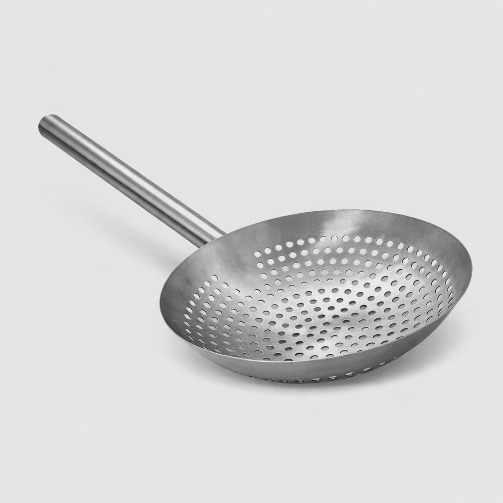 - Strong Handle for Safe Handling: Long, sturdy handle provides control and keeps hands away from hot oil or boiling water
