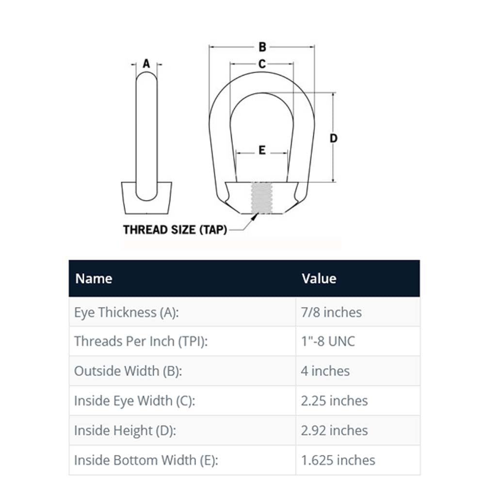 4 Pc Hot Dipped Galvanized 7/8" Eye Nut with 1"-8 UNC Tap 9,500 Lbs WLL