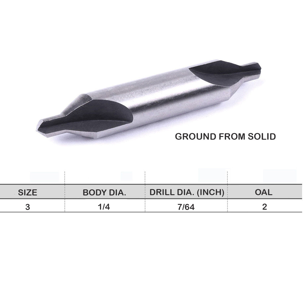 - HSS Standard Center Drills Combined Countersink Bits Set 5 PC No.3 60 Degree
