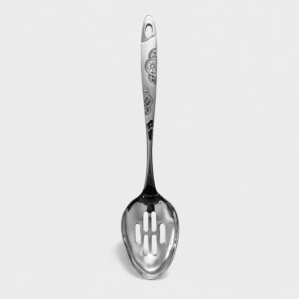 - Large Slotted Spoon Design: Efficient draining of liquids and grease