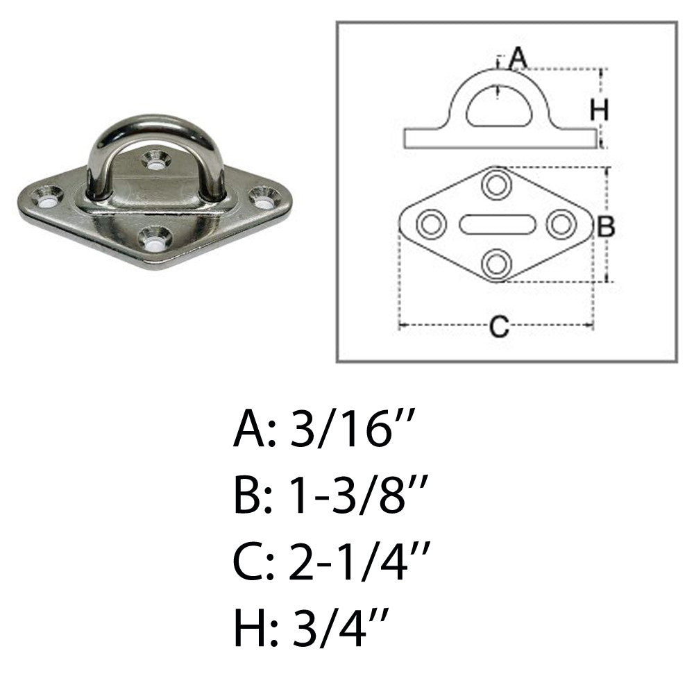 • Light Duty Diamond Pad Eye Plate 3/16" 304 Stainless Steel for Hammock Boat Deck 4 Pcs