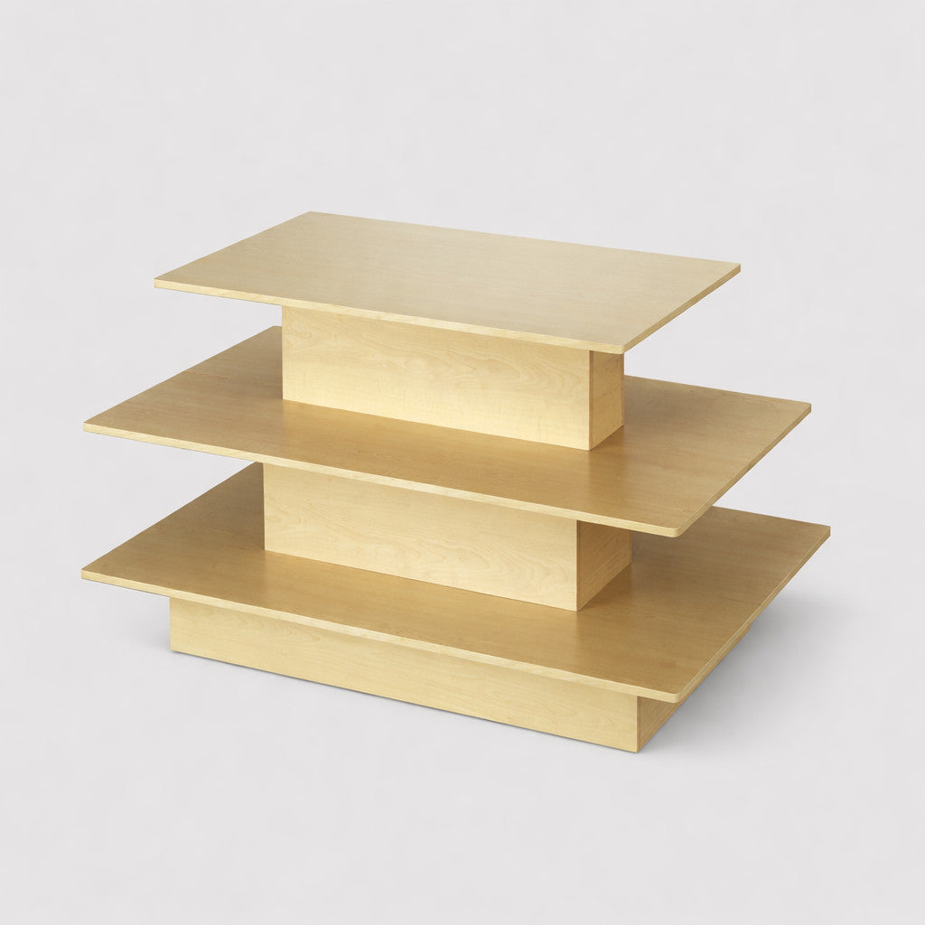 3-Tier Rectangular Waterfall Display Table – 60”W x 42”D x 39”H Maple Retail Merchandising Table for Store, Boutique & Showroom Floor Display