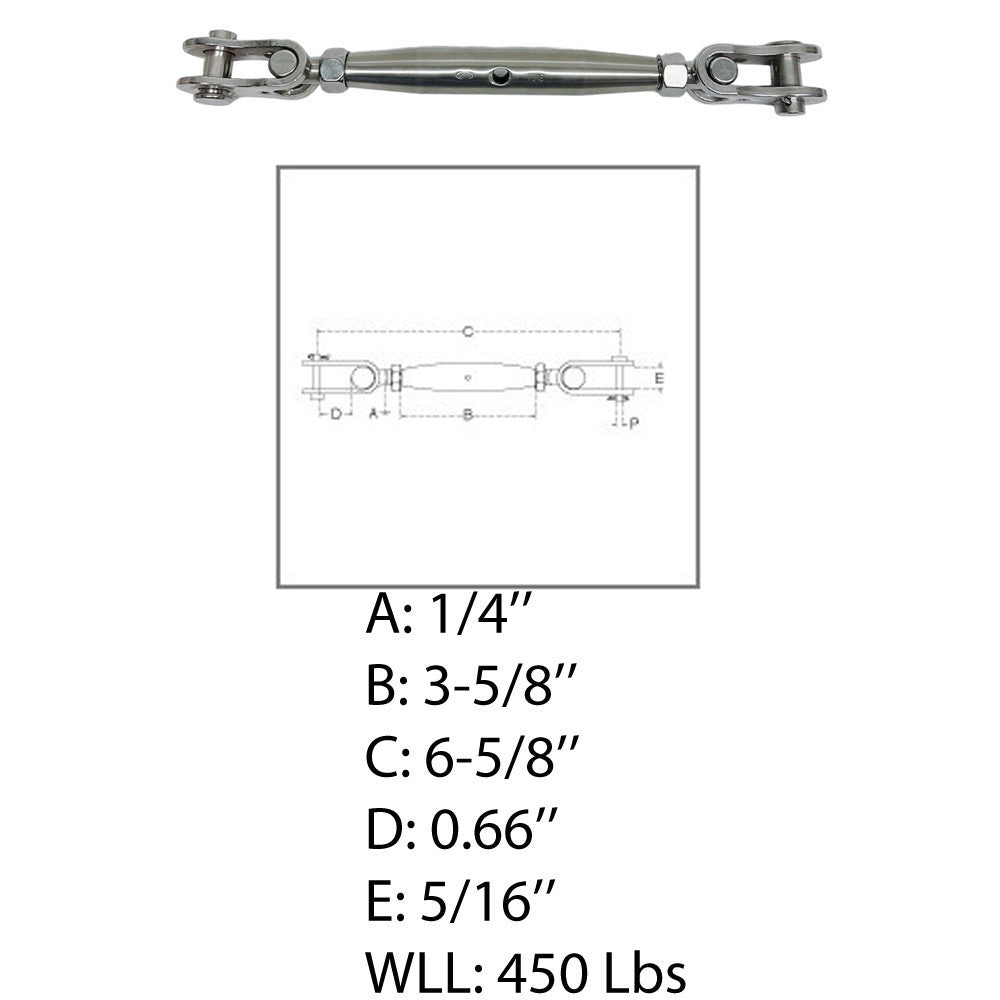 - Marine 1/4" Toggle & toggle Pipe Turnbuckle 450 Lbs WLL Stainless Steel T316