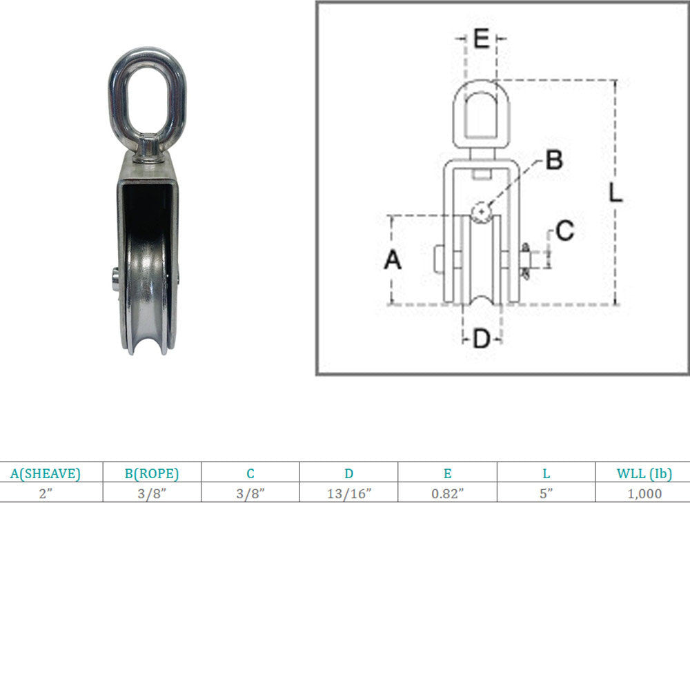 - Marine 2" Sheave Square Block 3/8" Rope Wire Pulley 1000Lb WLL Stainless Steel 4 Pcs