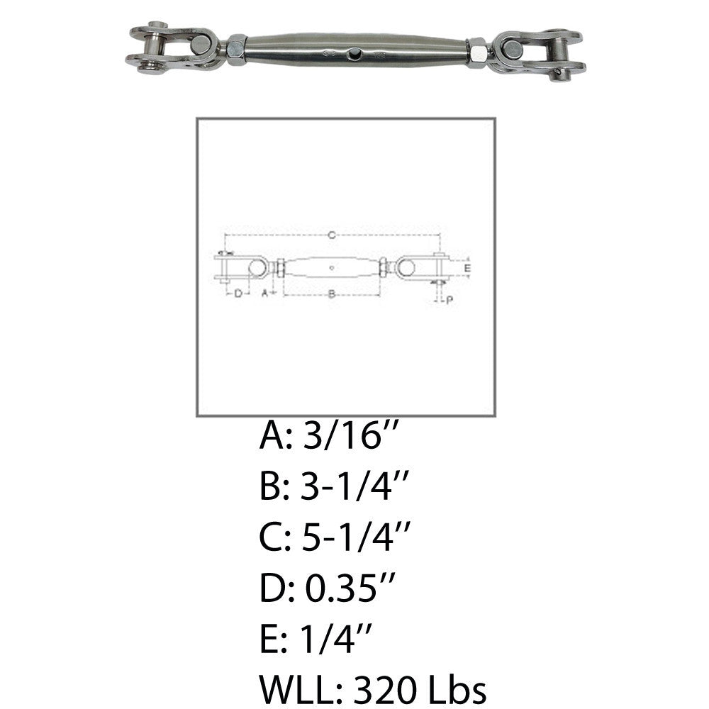 - Marine 3/16" Toggle & toggle Pipe Turnbuckle 320 Lbs WLL Stainless Steel T316