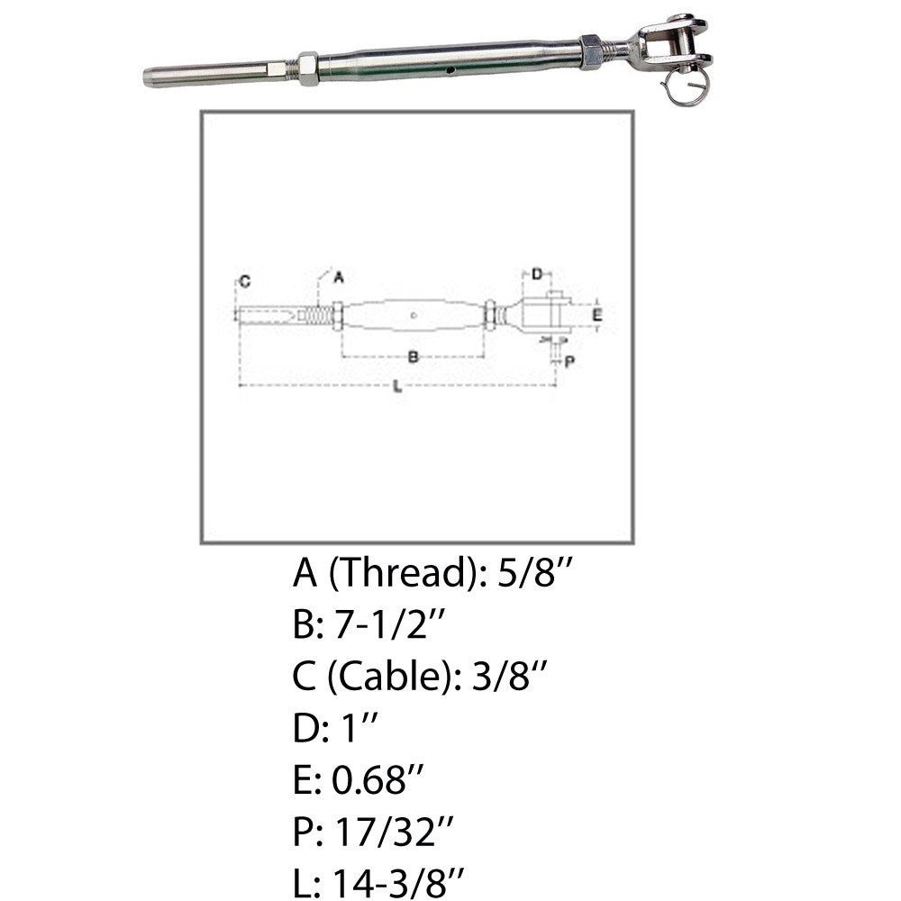 - Marine 3/8" Cable Jaw And Swage Stud Turnbuckle 5/8" Thread Stainless Steel