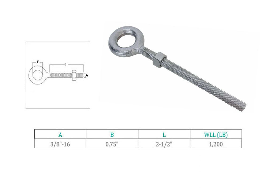- Marine 3/8" x 2-1/2"" Drop Forged Plain Eye Bolt 1200 Lbs WLL Stainless Steel T316