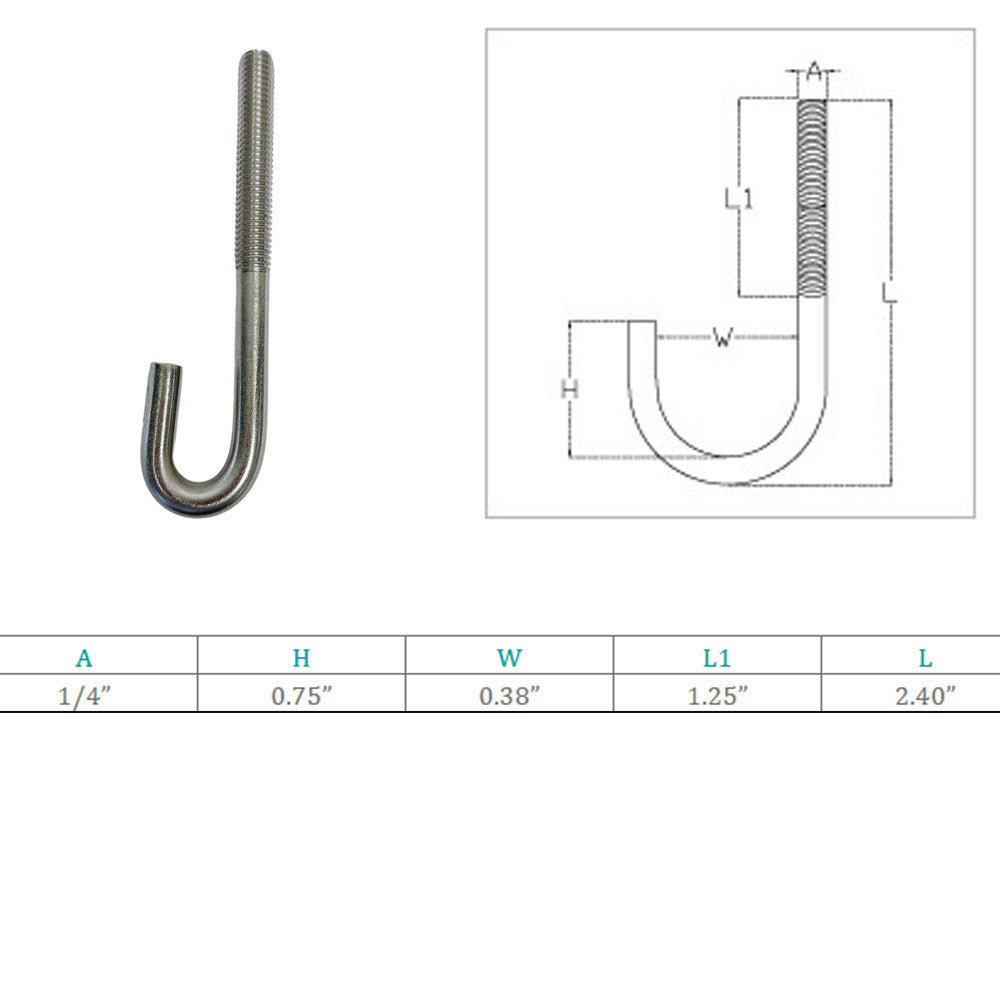 Marine Boat 1/4" x 2.40" J Bolt Spring Hook J-Bolt J Hook Stainless Steel T316