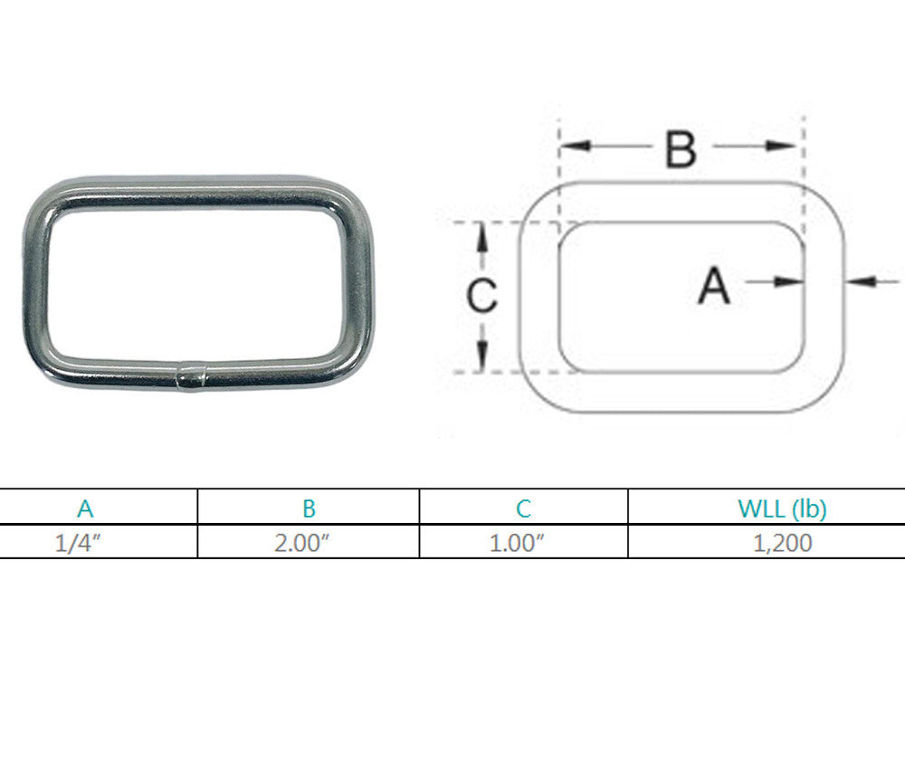 Marine T316 Stainless Steel 1/4" Rectangle Ring 1,200 Lbs WLL For Yacht Sailing