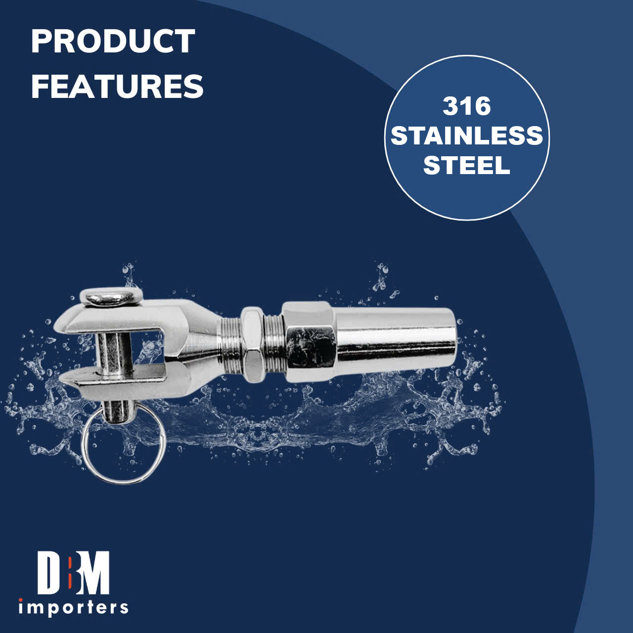 Stainless Steel T316 which performs superior in corrosion and rust resistance, durability, and strength, applicable for both indoor and outdoor uses, so you’re sure to use our turnbuckle for years