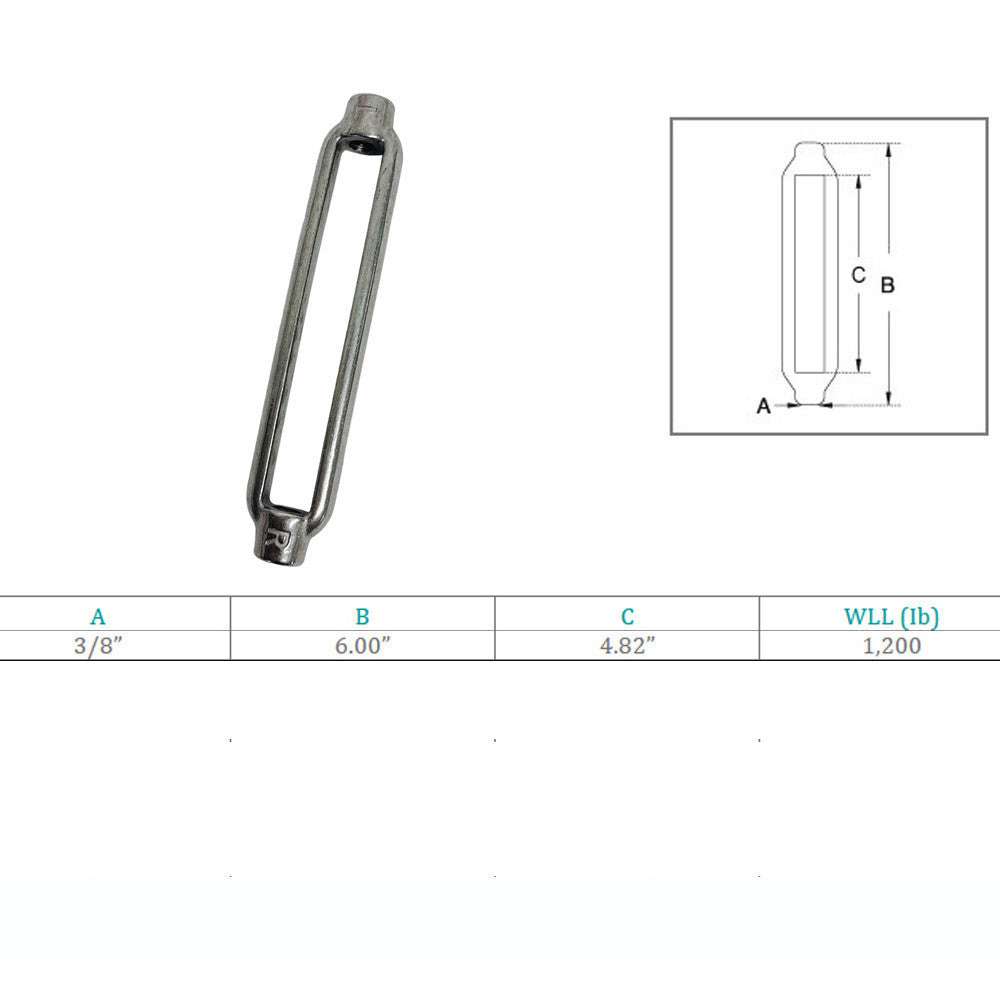 - Marine Grade 3/8" x 4-7/8" Turnbuckle Body 1200 Lbs WLL, Stainless Steel T316