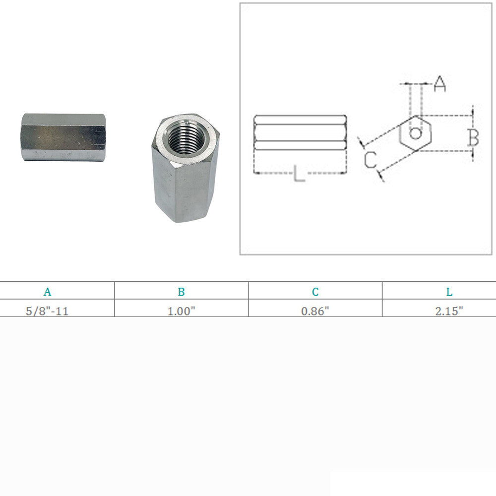 - 4 Pcs Marine Grade 5/8" Coupling Nut Connecting Nut Fully Thread Stainless Steel T316