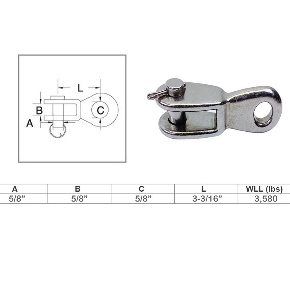 - Marine Grade 5/8" Rigging Toggle 3580 Lb WLL Lifting Rigging Stainless Steel 316 4Pc