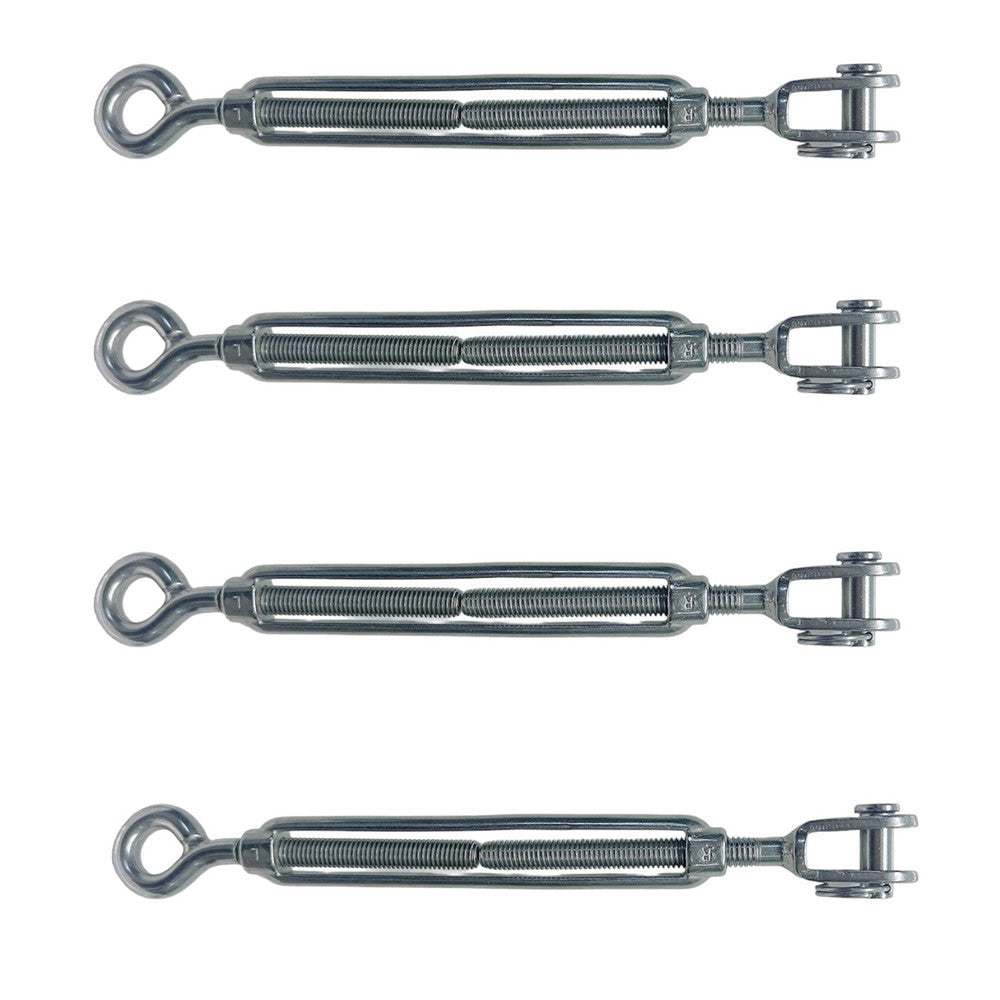 • Marine Grade Stainless Steel Jaw Eye 1/2" x 6-3/4" Turnbuckles for Cable Rope 4 Pcs