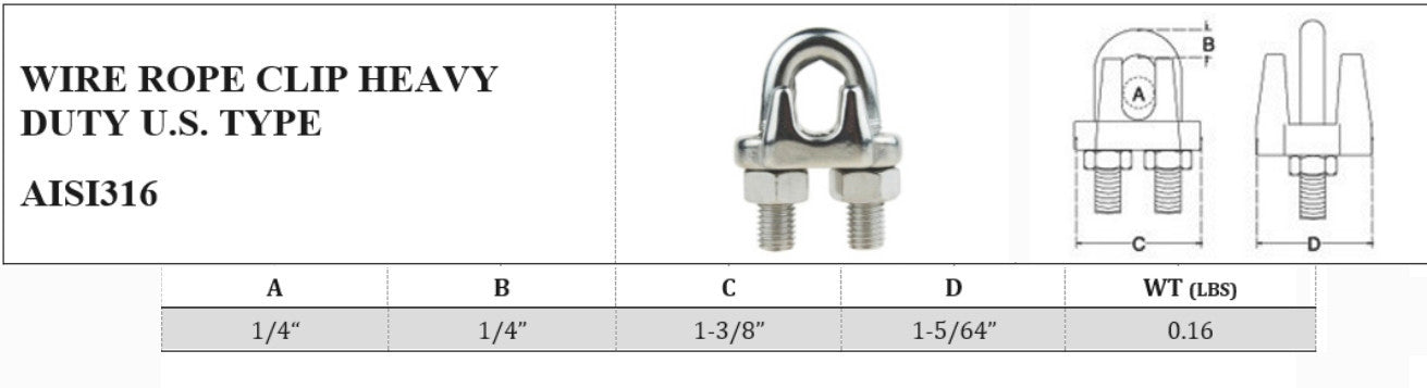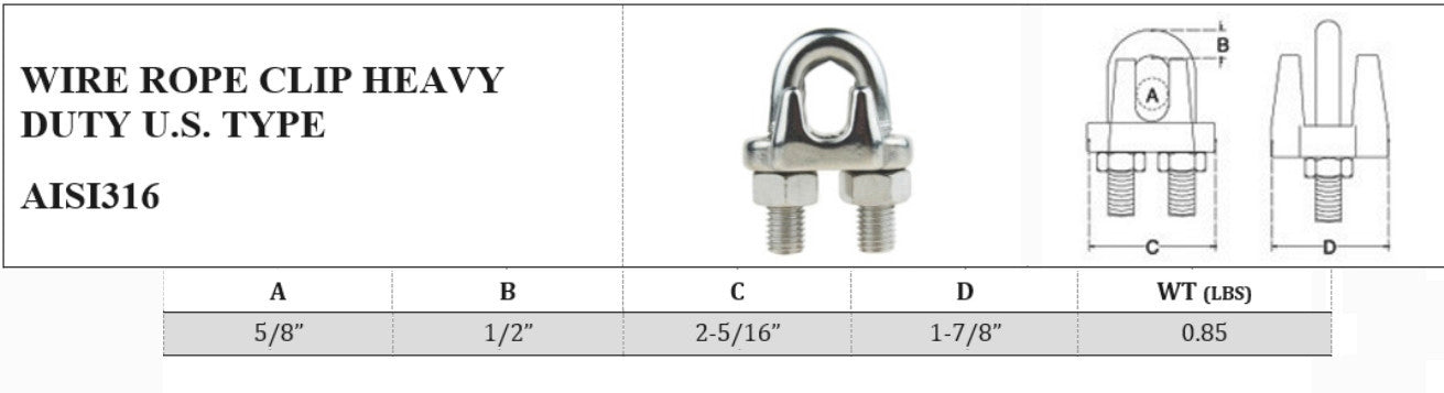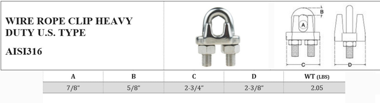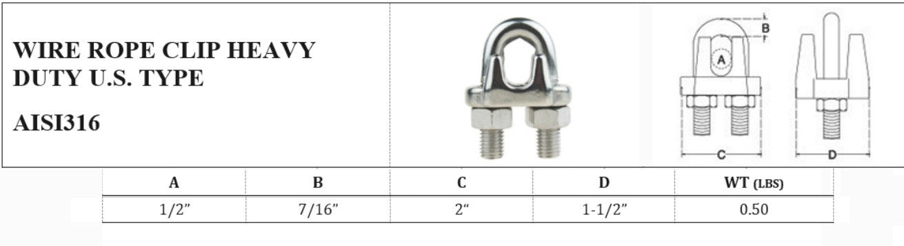 - Marine Industrial Heavy Duty Wire Clip Rope Clamp Stainless Steel Cable_Various Sizes