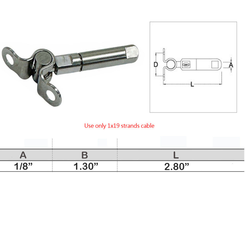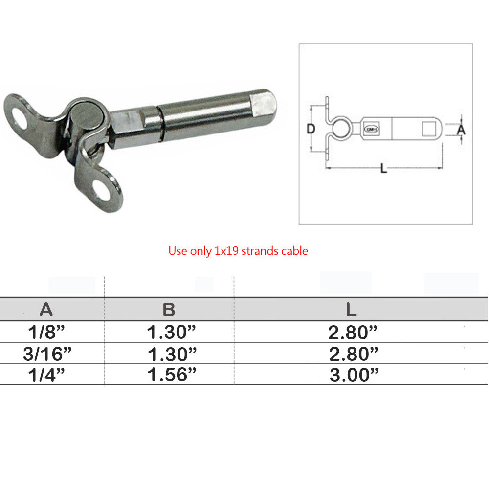 - Marine Push And Go Swageless Deck Toggle For Cable Wire T316 Stainless Steel