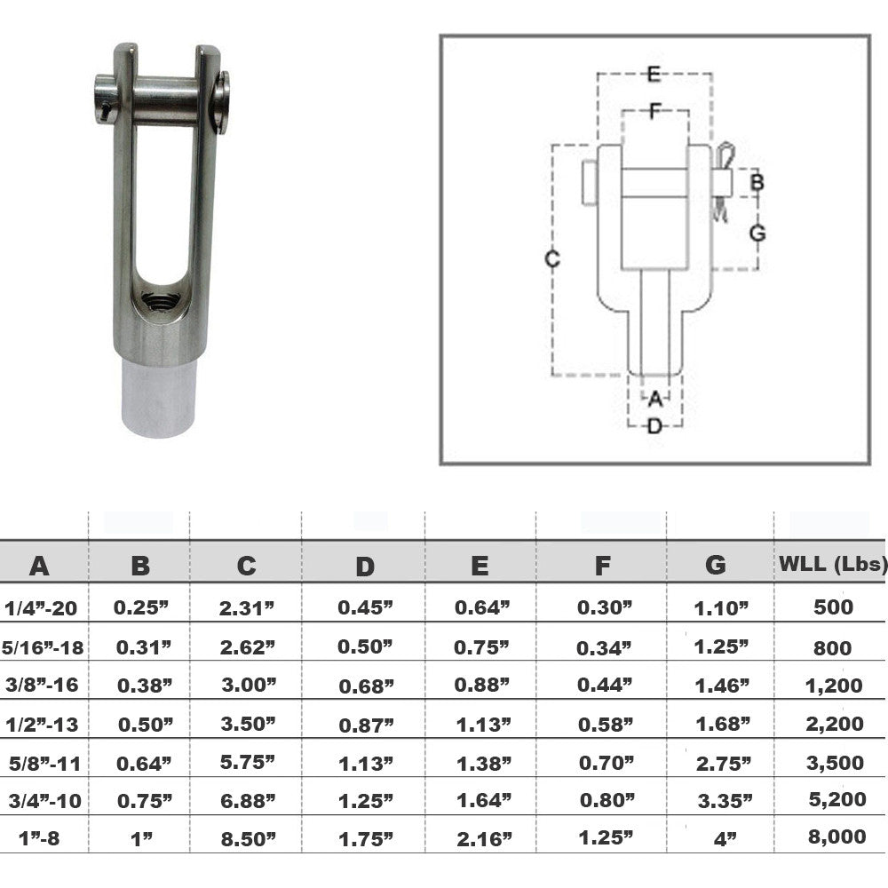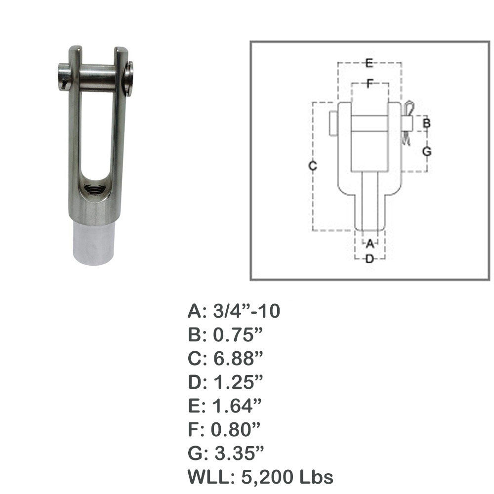Marine Right Handed Threaded Yoke End Stainless Steel T316
