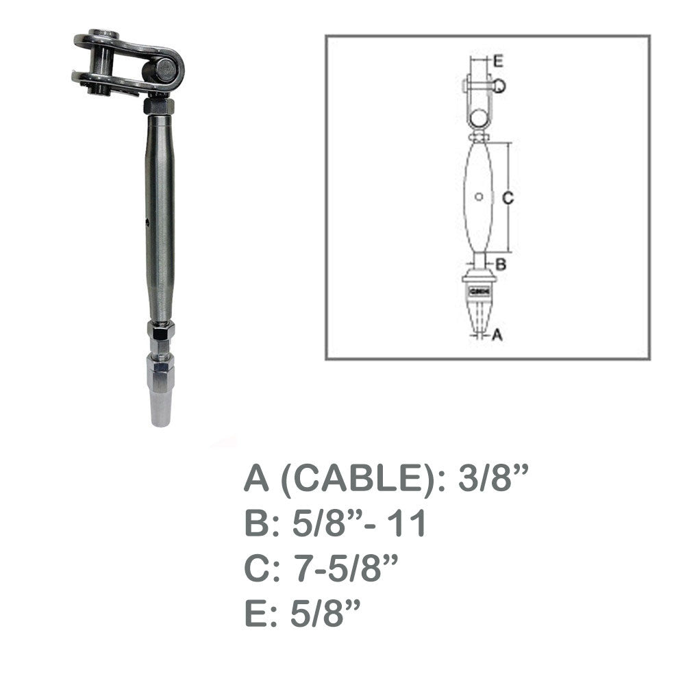 - Marine Toggle And Swageless Turnbuckle For 3/8" Cable Wire Stainless Steel T316
