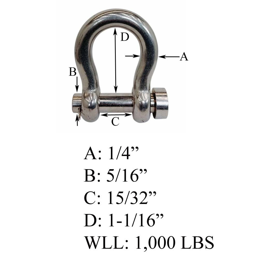 - Mil-Spec 1/4" Round Pin Anchor Shackle 1,000Lb WLL Forged Stainless Steel T316