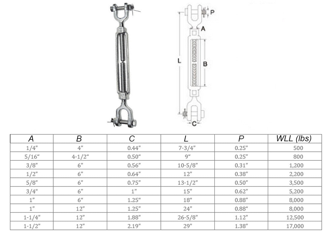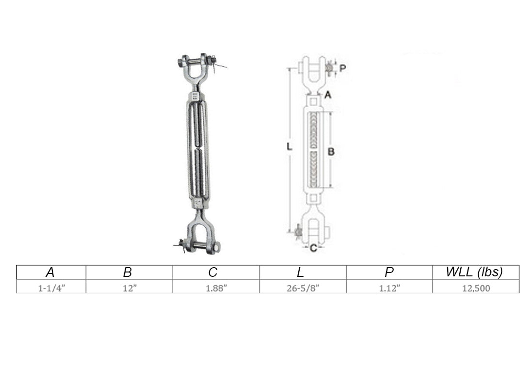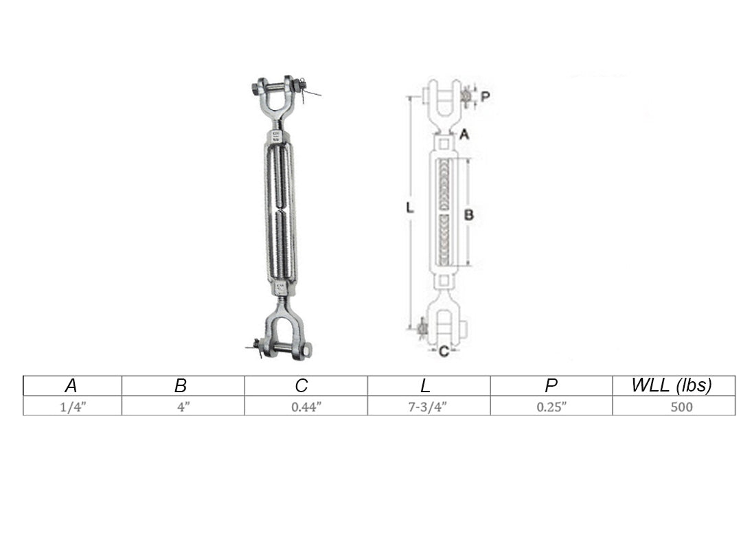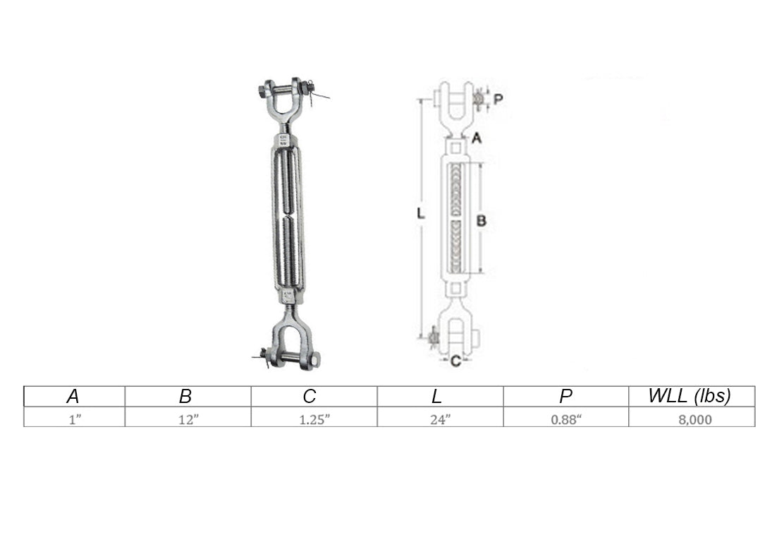 Mil Spec Jaw Jaw Turnbuckle WLL Stainless Steel T316