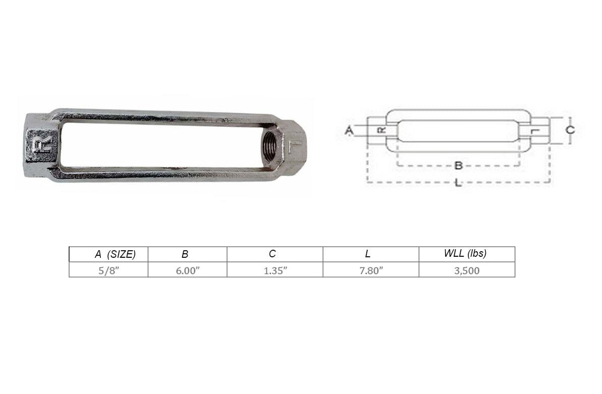 Mil-spec Turnbuckle Body WLL Stainless Steel T316