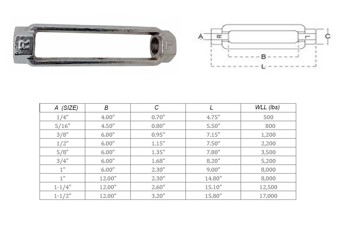- Mil-spec Turnbuckle Body Stainless Steel T316