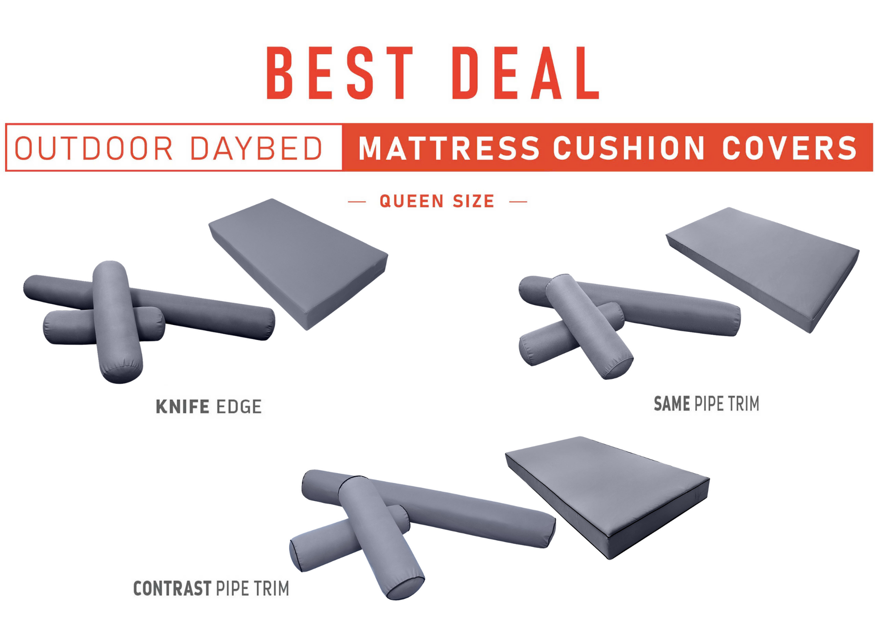 - Model-6 QUEEN SIZE Daybed Mattress Bolster Pillow Cushion Outdoor COVER ONLY