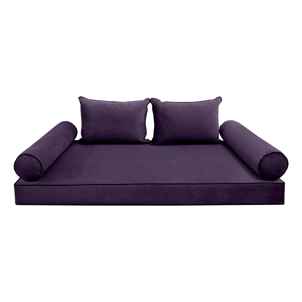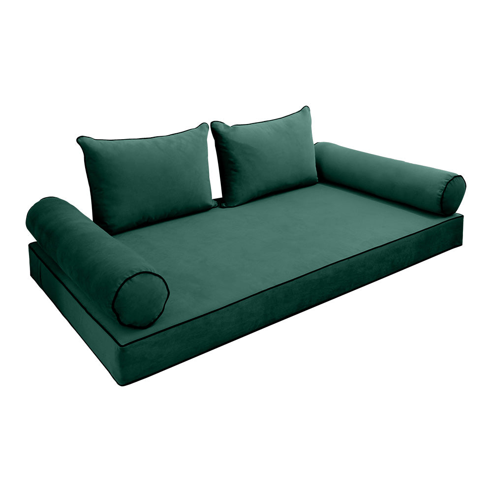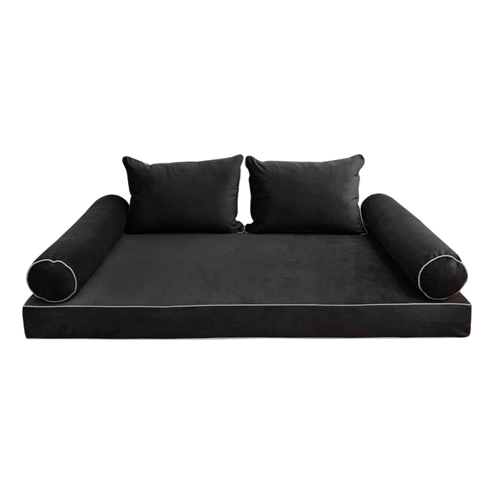 - Model V4 - Velvet Indoor Daybed Mattress Bolster Backrest Cushions and Covers |Complete Set|