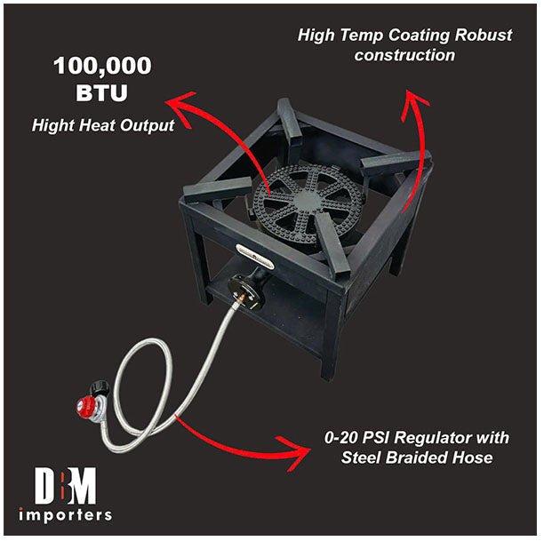 Outdoor High Pressure Square Propane Stove Burner 100,000 BTU Gas Regulator