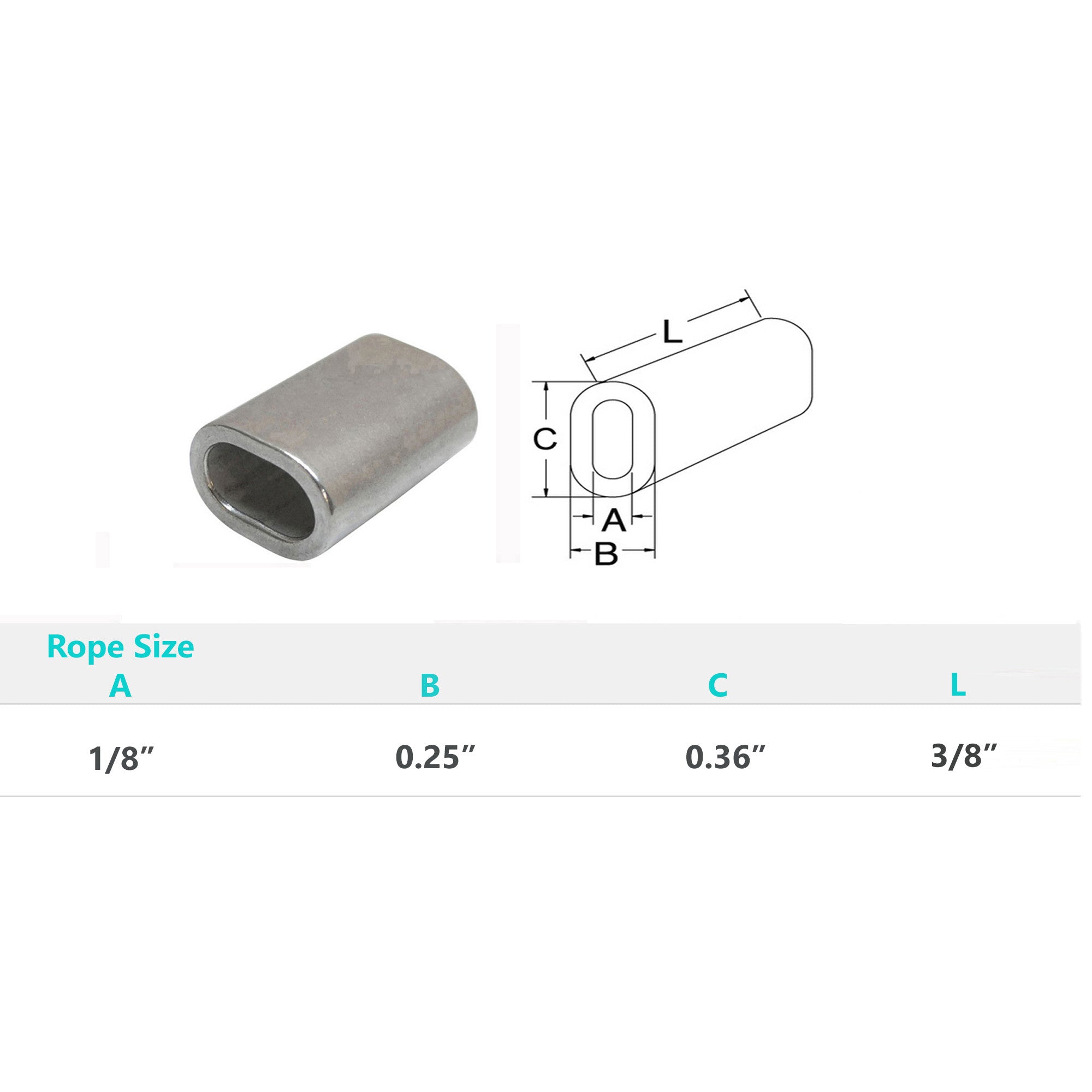 - Set Of 10 Pc 1/8'' Marine Stainless Steel Wire Rope Oval Sleeve Sleeves Crimping SS316