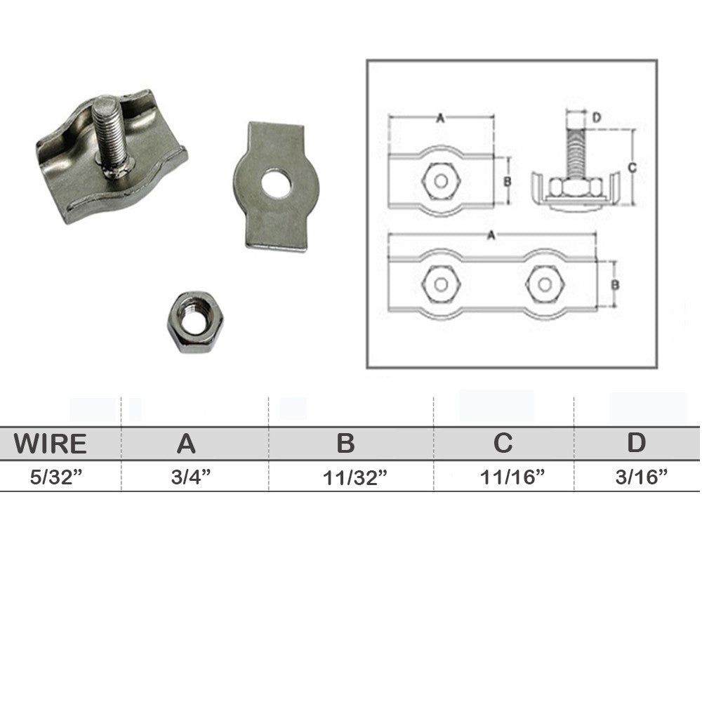 - Simplex Single Bolt Wire Rope Clips,Stainless Steel for 5/32" Wire Cable