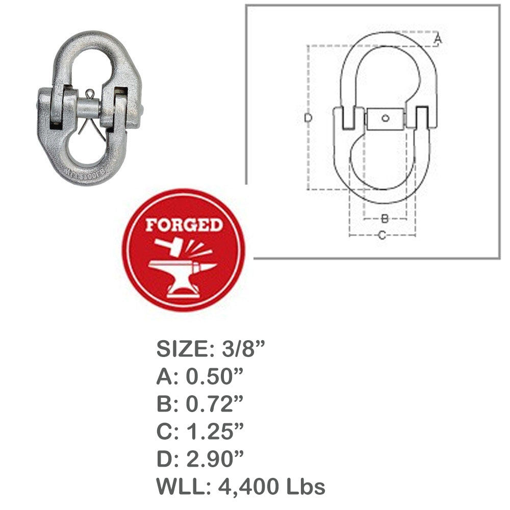 - Stainless Steel 3/8" Marine Hammerlock Coupling Link Connecting Link 4400Lb WLL 4 Pcs