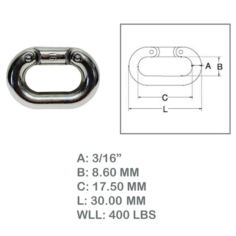 - Stainless Steel 316 Chain Connecting Link 3/16" Marine Grade Connector 4 Pcs