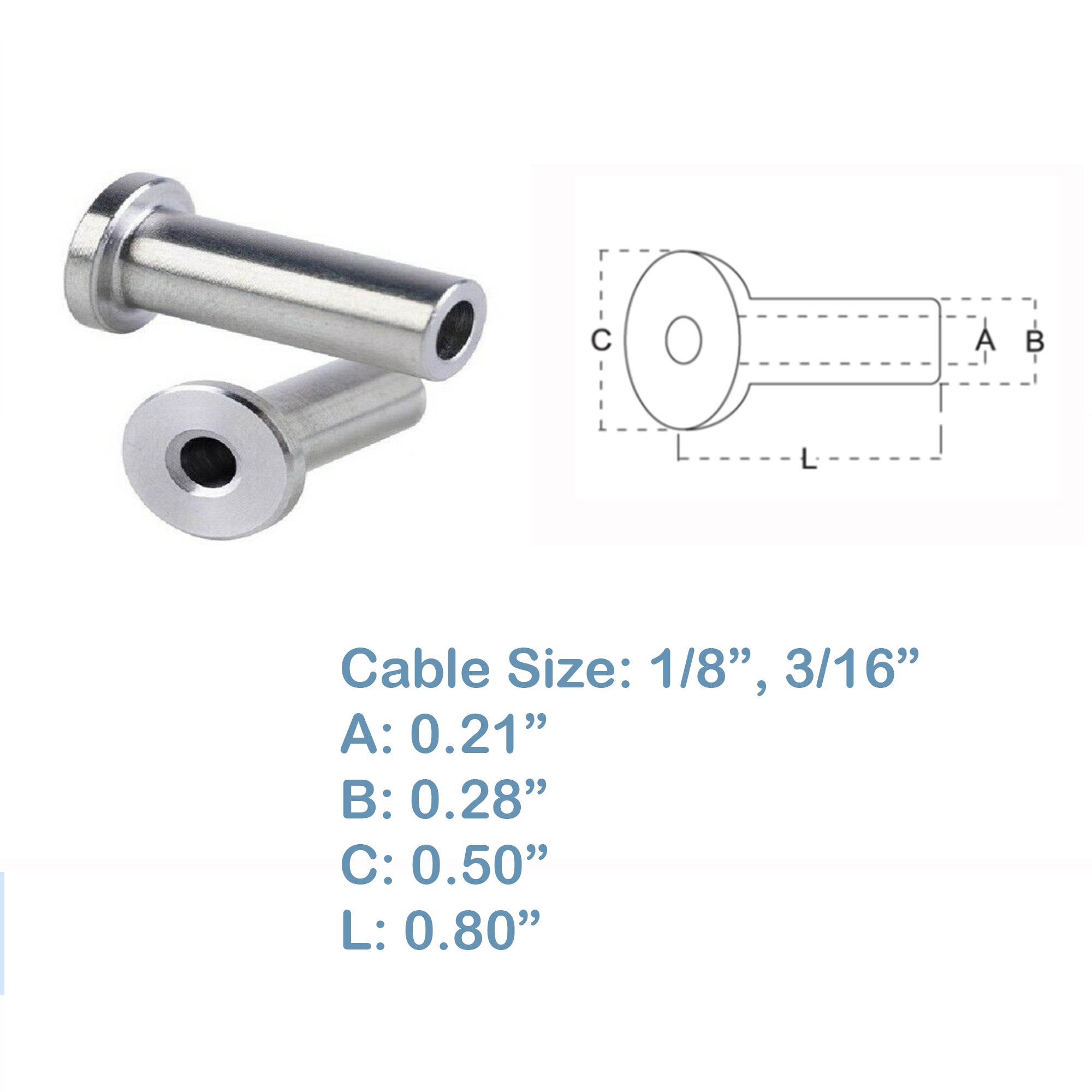 - Set of 20 Pcs Stainless Steel 316 Protector Sleeve for 1/8" & 3/16" Cable Railing
