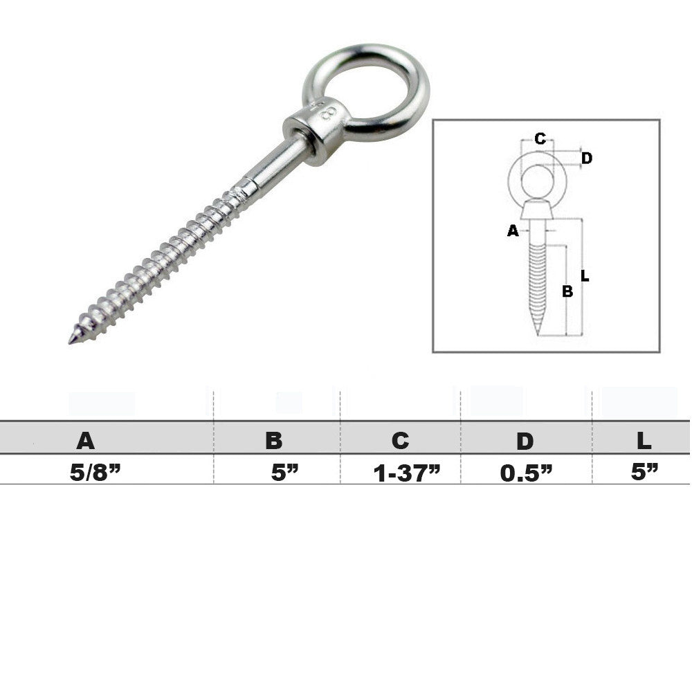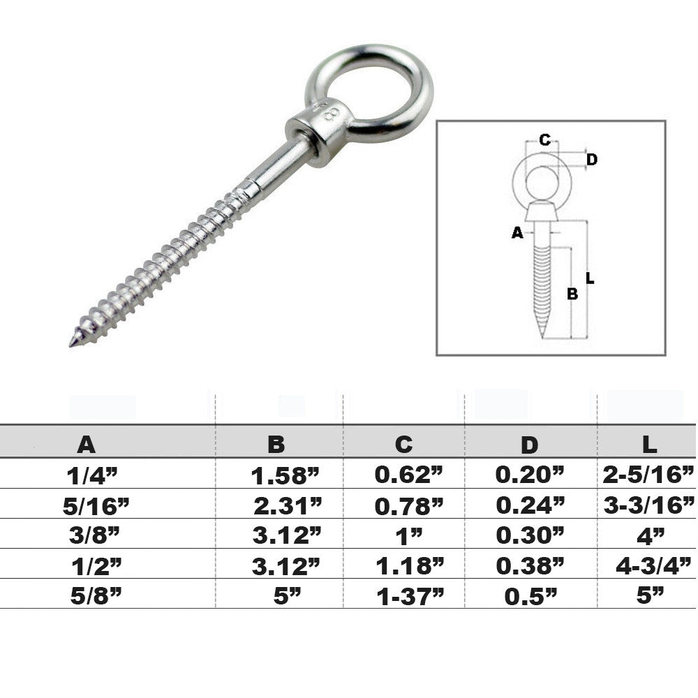 - Stainless Steel SS 316 Screw Lag Eye Bolt