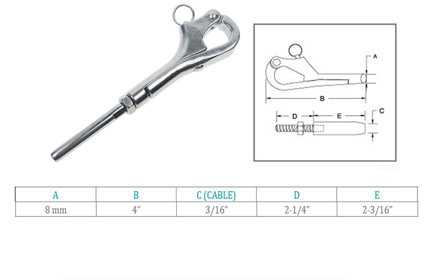 - Stainless Steel 4" Pelican Hook Shackle For 3/16" Cable Wire Sailing Boat Yacht