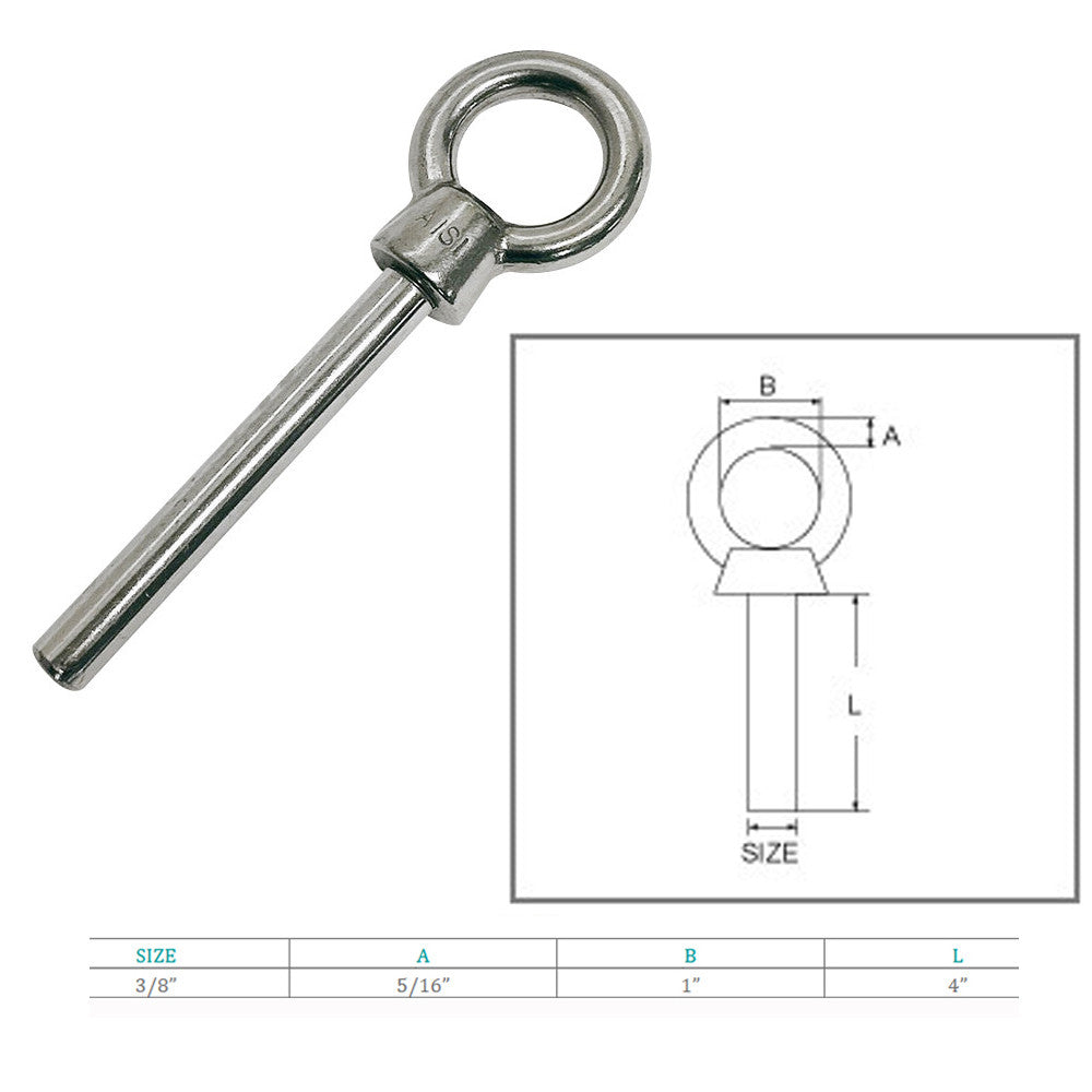 - Stainless Steel Eye Bolt 3/8"x4" Marine Boat Grade Non Threaded Shoulder Eyebolt